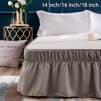 Three layers wrap around elastic solid bed skirt elastic band without sheet easy on/easy off dust ruffled tailored home hotel. Romolo wrap around elastic ruffled 14.5 bed skirt. Complete your bedding look with this easyfit wrap around solid ruffled bed skirt. It also provides the best fit due to the elastic wrap around the bed skirt. Biscaynebay wrap around bed skirts elastic dust ruffles, easy fit wrinkle and fade resistant silky luxrious fabric solid color, ivory for king and california king size beds 15 inches drop.